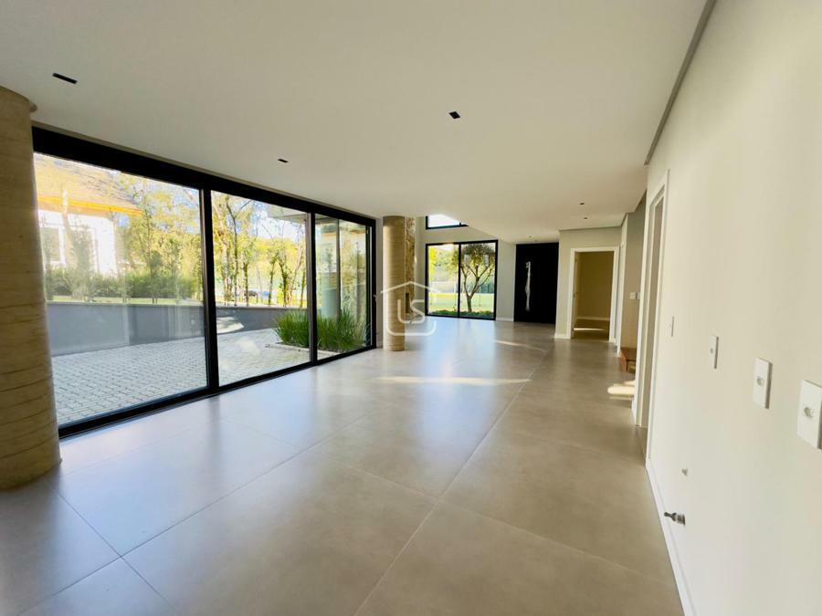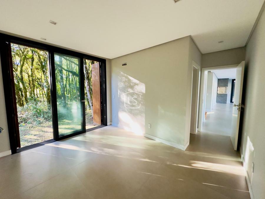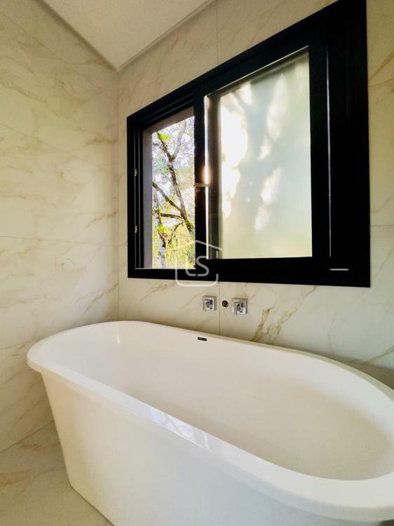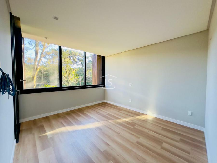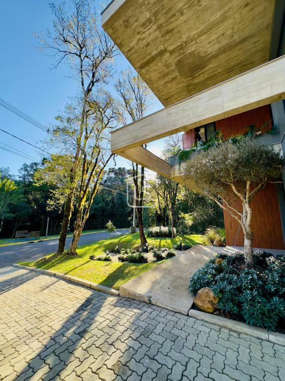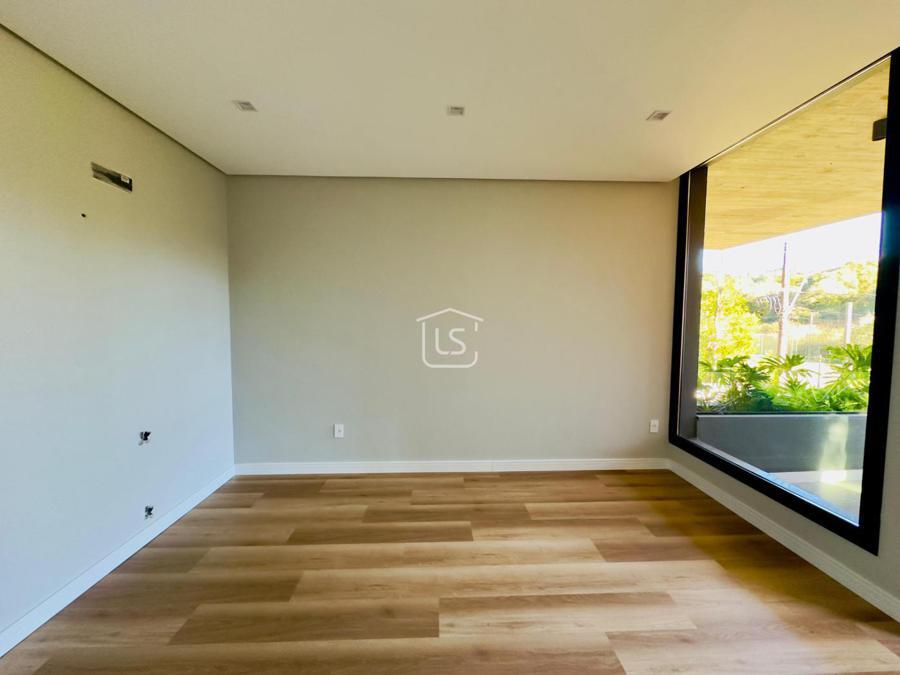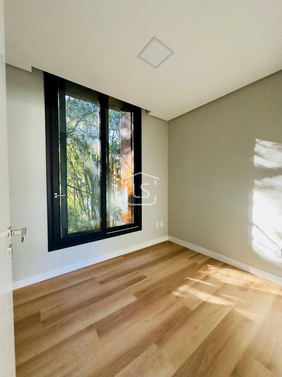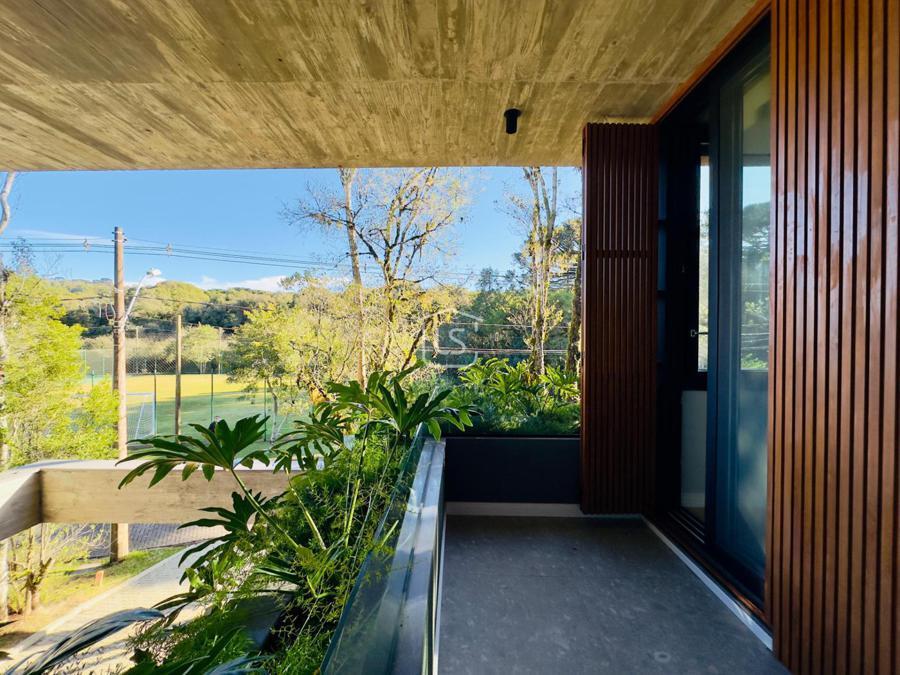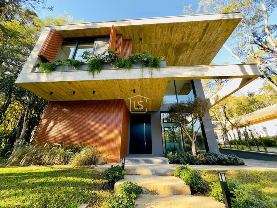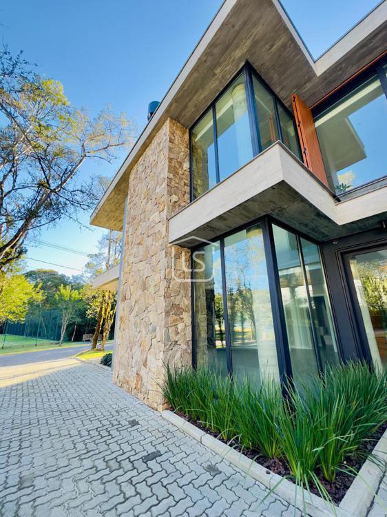 Bem distribuída em 4 amplas suítes, sendo uma térrea e outra máster, uma amplo living com lareira e pé direito duplo, cozinha gourmet com churrasqueira, lavabo, área íntima na parte superior, home office, despensa, área de serviço, esperas para split, calefação, água quente, porcelanato e piso vinílico, esperas para piso aquecido nos banhos, esquadrias em PVC preto com vidros duplos, painéis ripados em alumínio, forro gesso, e garagem para dois carros. Terreno plano e de frente para a infraestrutura de lazer do condomínio.