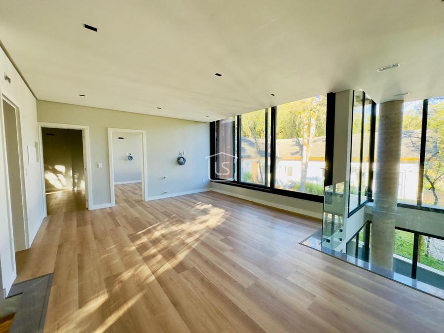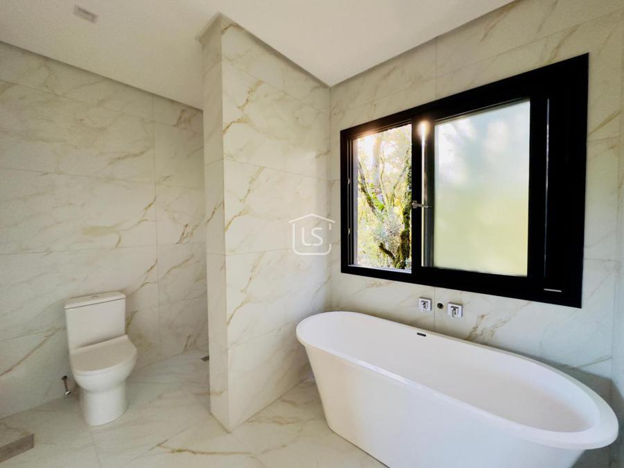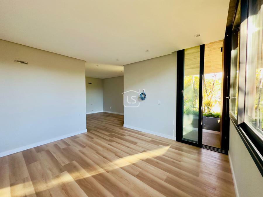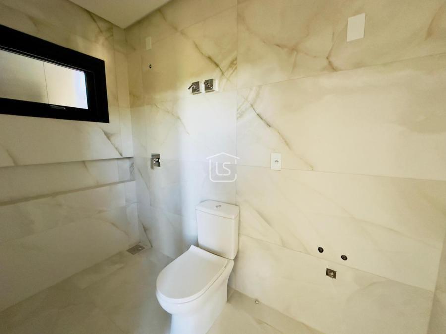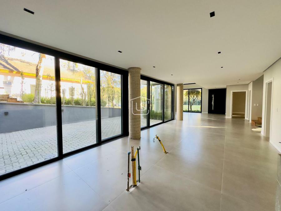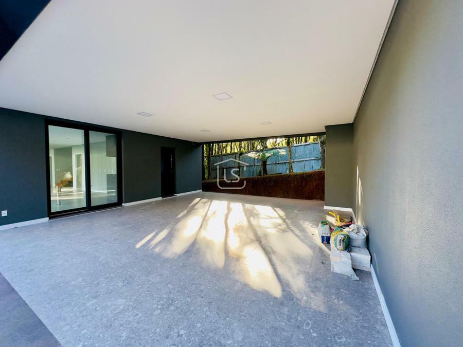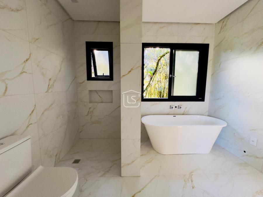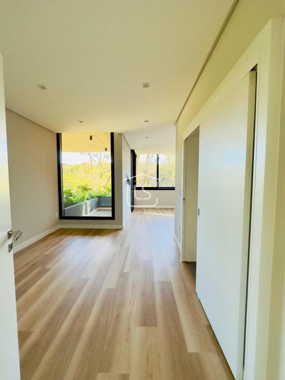 Bem distribuída em 4 amplas suítes, sendo uma térrea e outra máster, uma amplo living com lareira e pé direito duplo, cozinha gourmet com churrasqueira, lavabo, área íntima na parte superior, home office, despensa, área de serviço, esperas para split, calefação, água quente, porcelanato e piso vinílico, esperas para piso aquecido nos banhos, esquadrias em PVC preto com vidros duplos, painéis ripados em alumínio, forro gesso, e garagem para dois carros. Terreno plano e de frente para a infraestrutura de lazer do condomínio.
