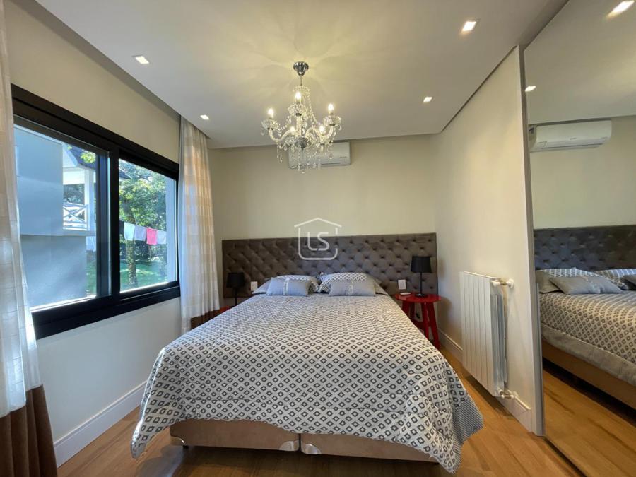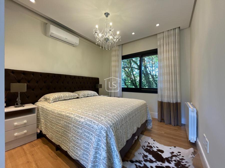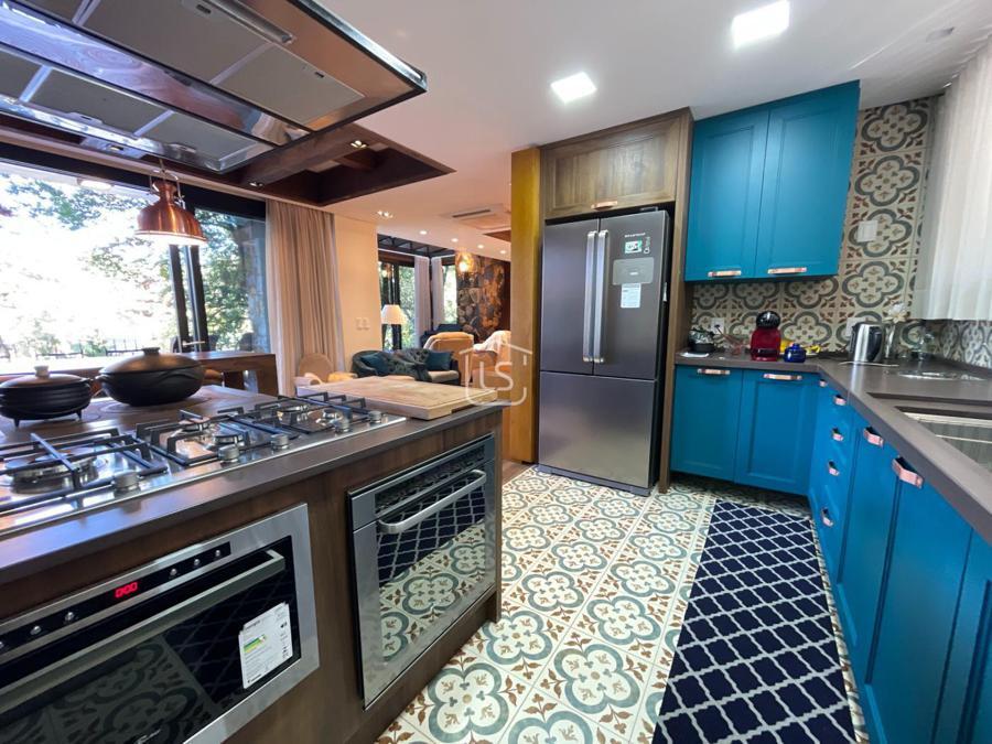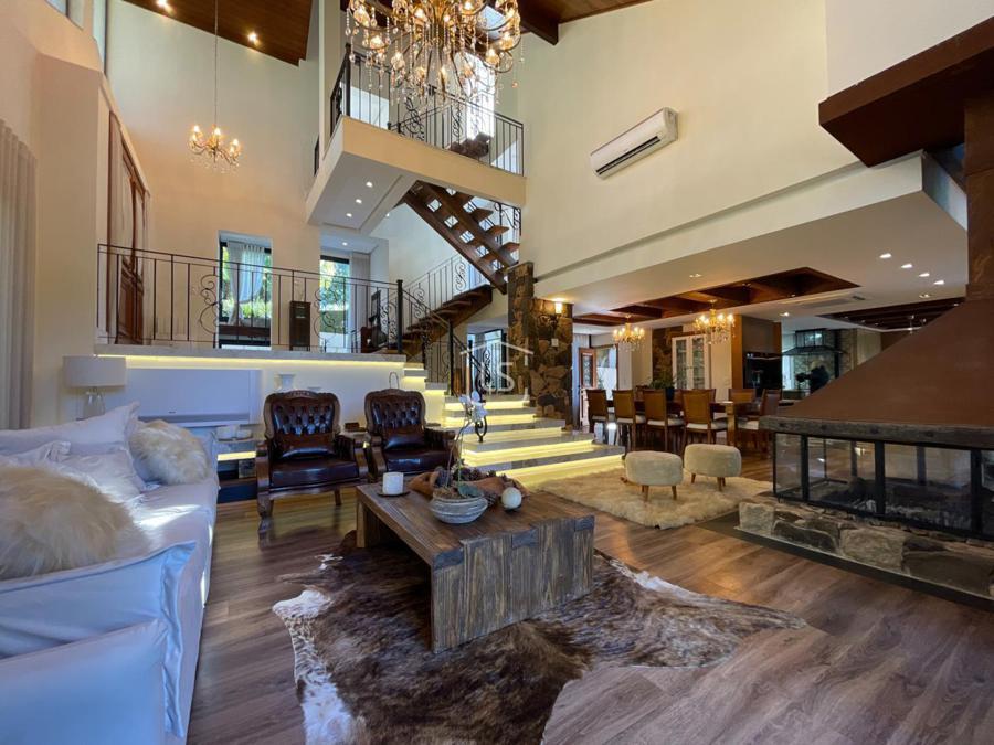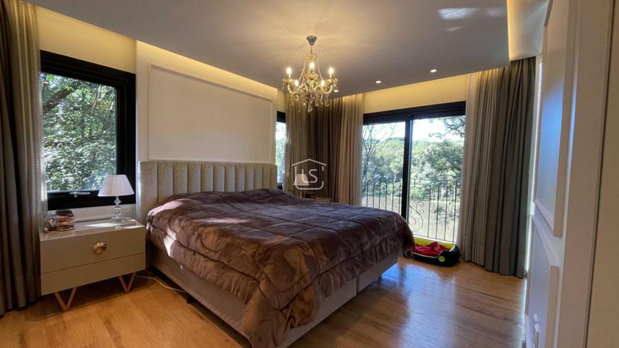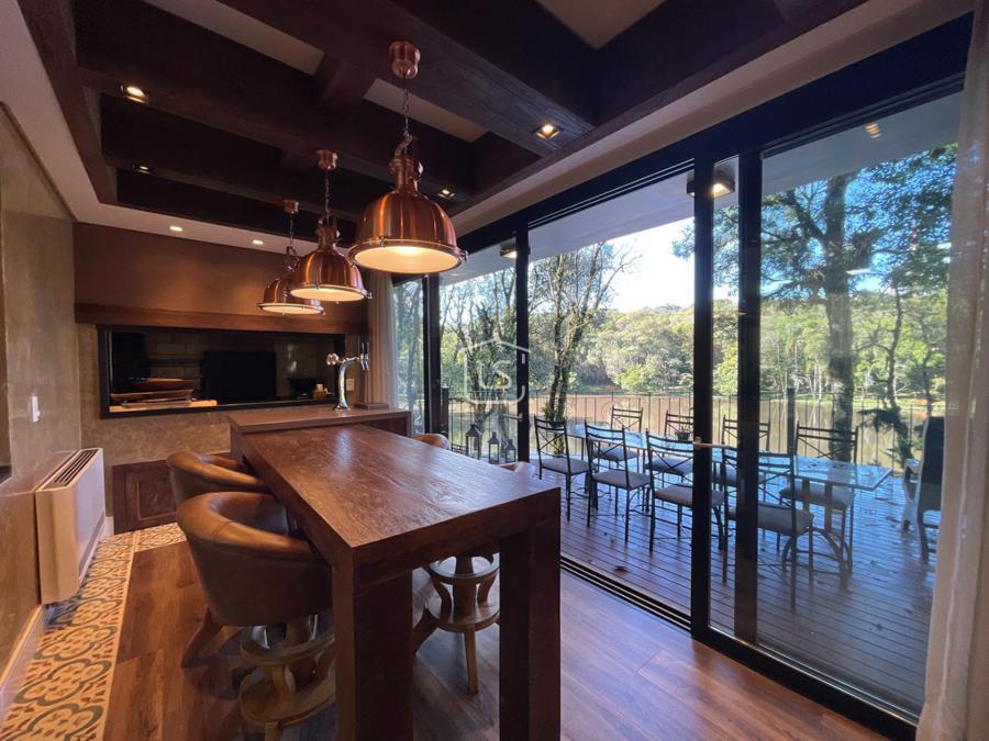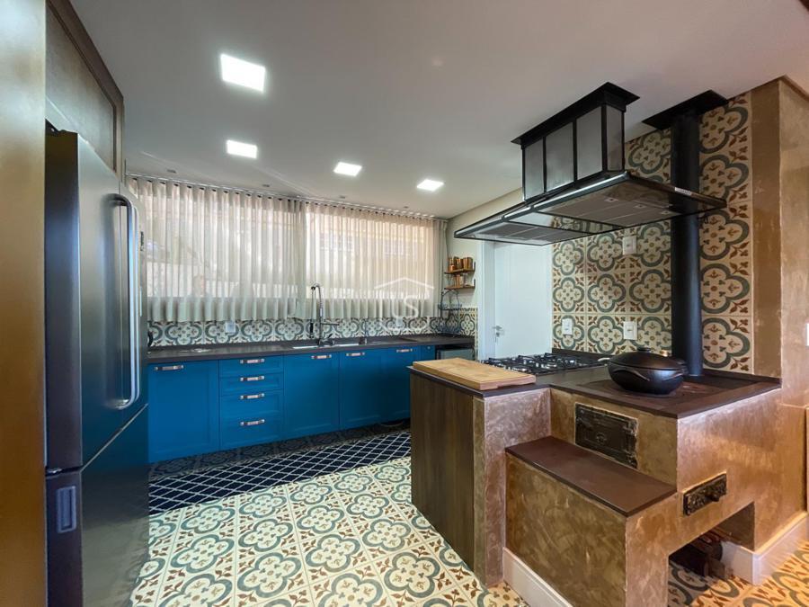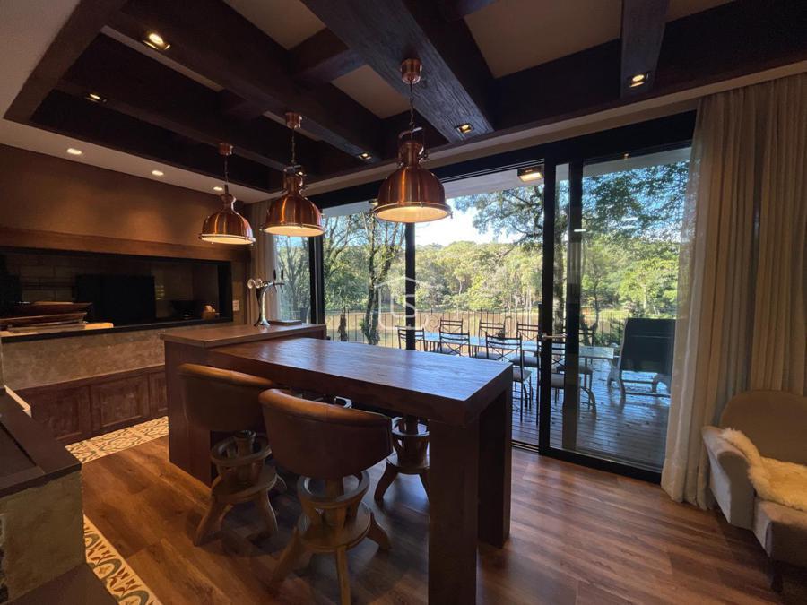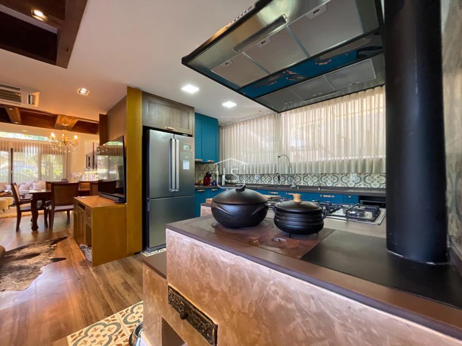 Distribuída em 4 suítes, sala de estar com lareira, sala de jantar com sacada, espaço gourmet com churrasqueira, parrilla e bifeteira. Cozinha americana com fogão a lenha e lavabo.