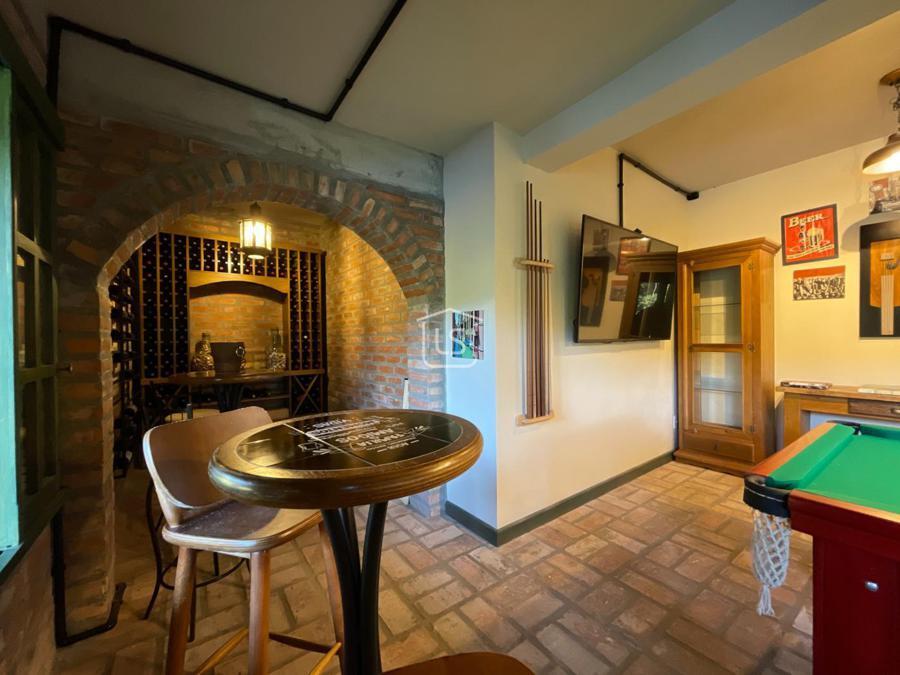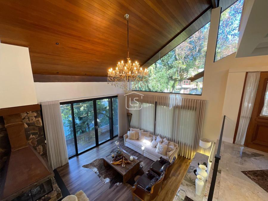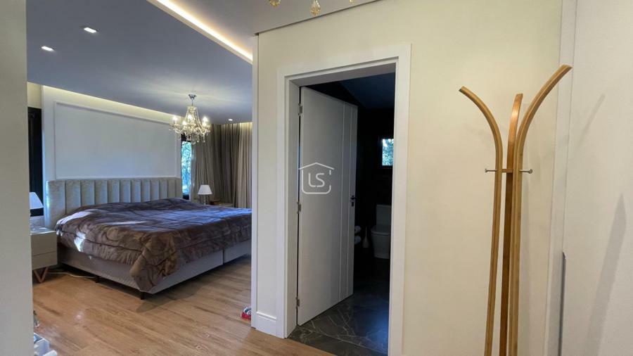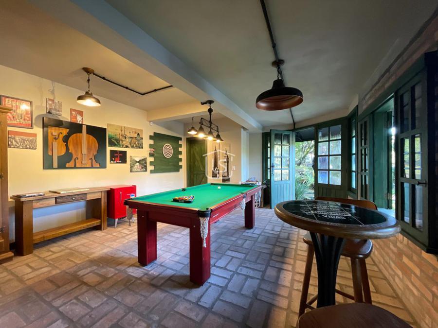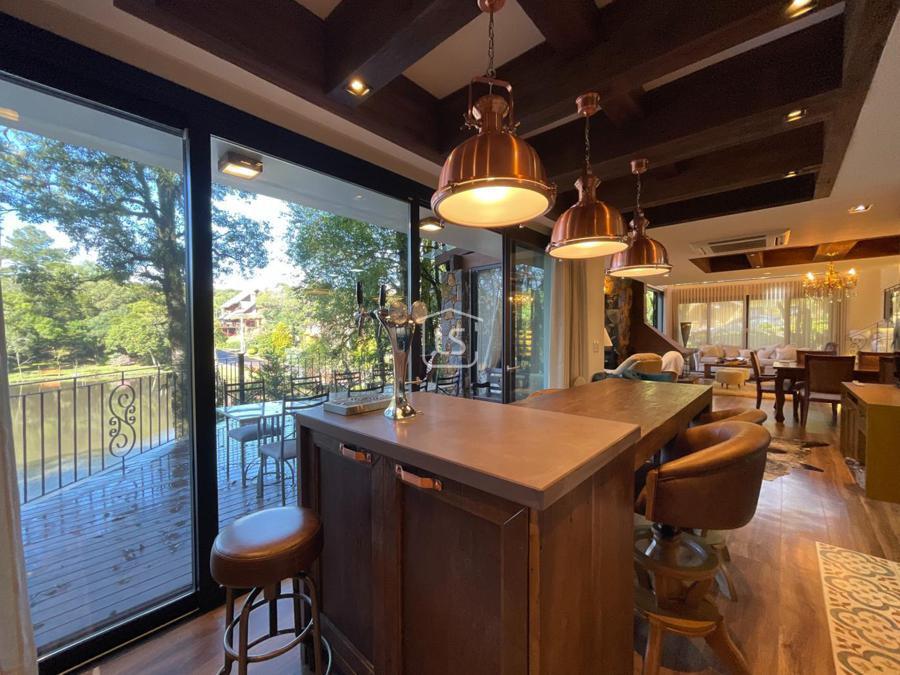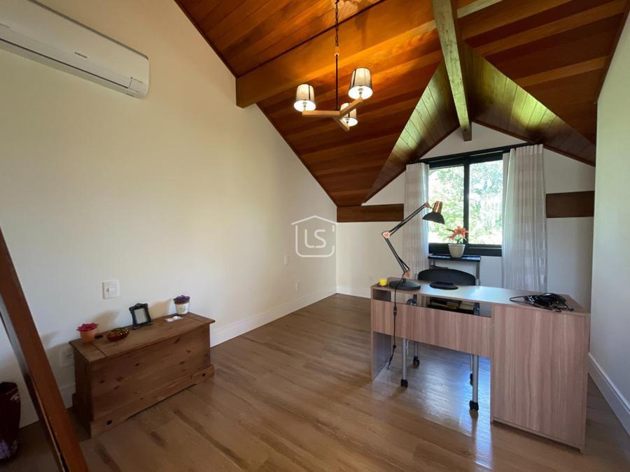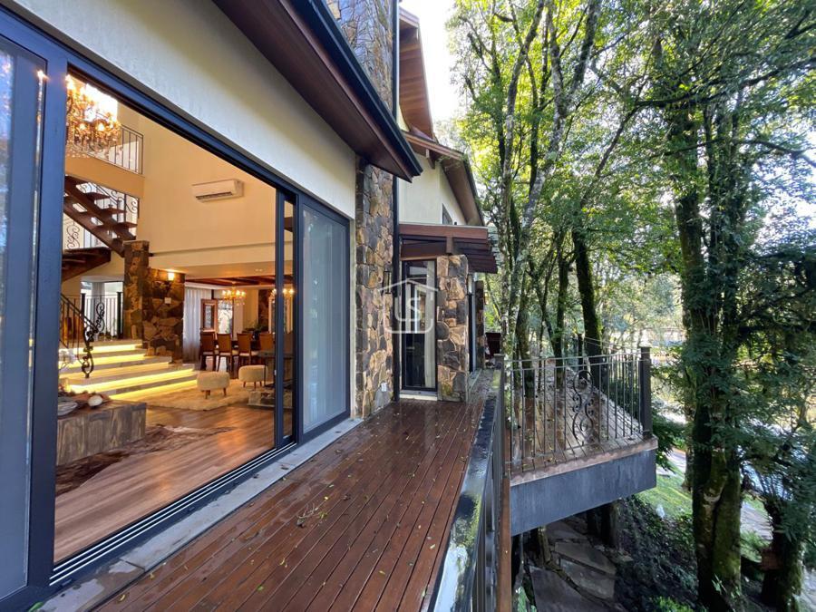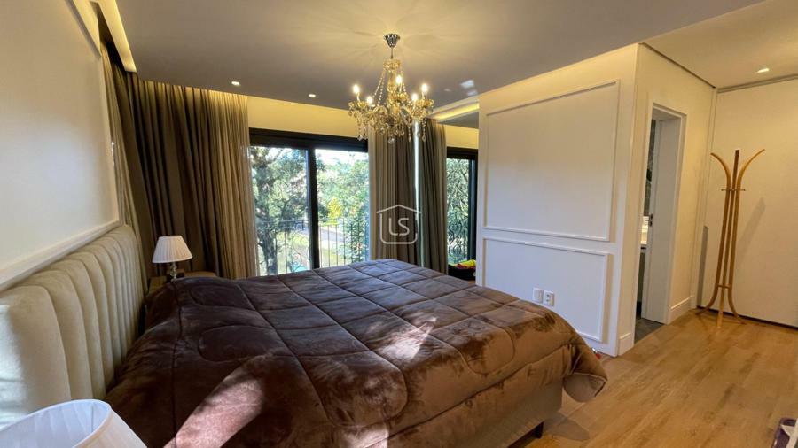 Distribuída em 4 suítes, sala de estar com lareira, sala de jantar com sacada, espaço gourmet com churrasqueira, parrilla e bifeteira. Cozinha americana com fogão a lenha e lavabo.
