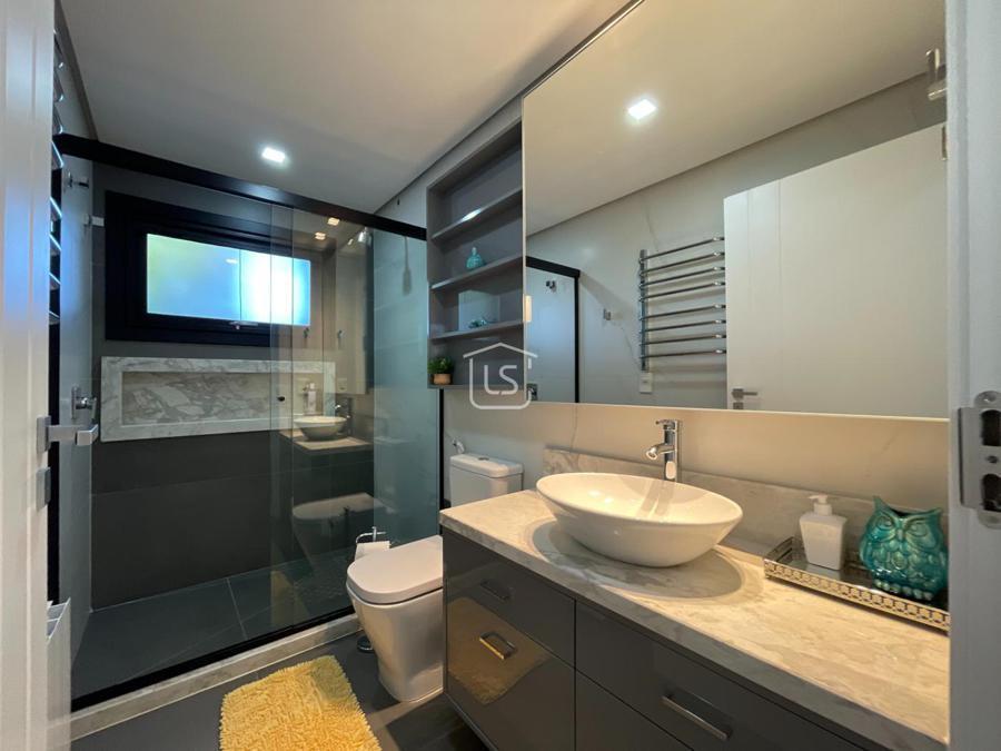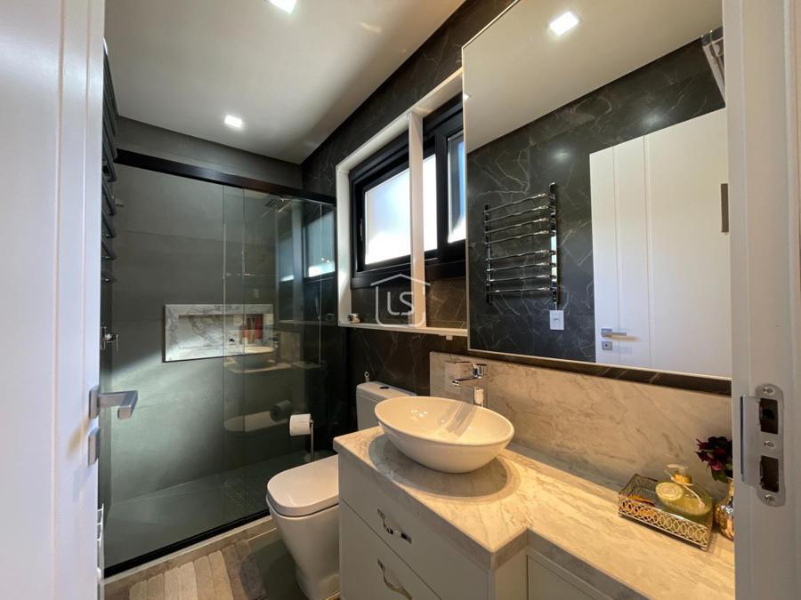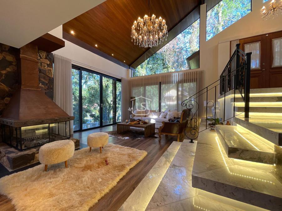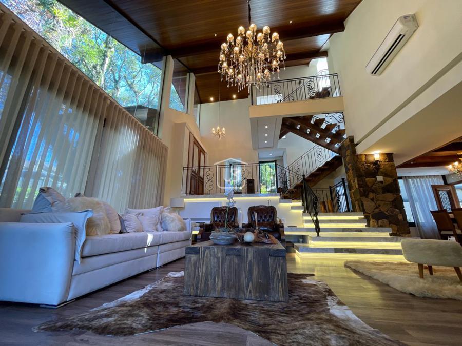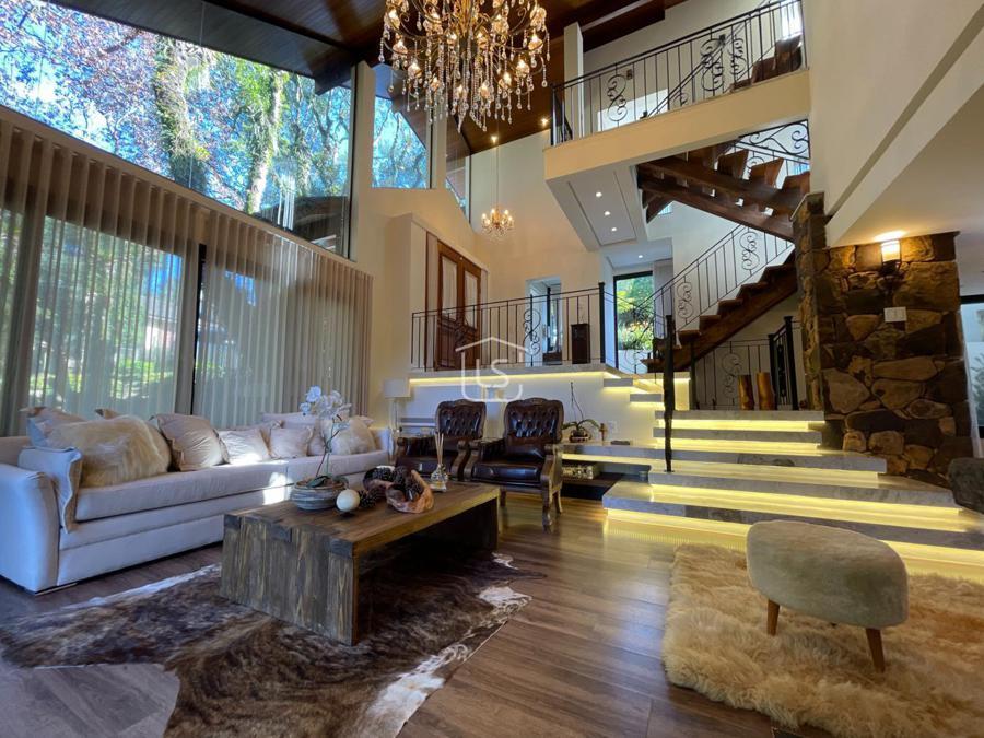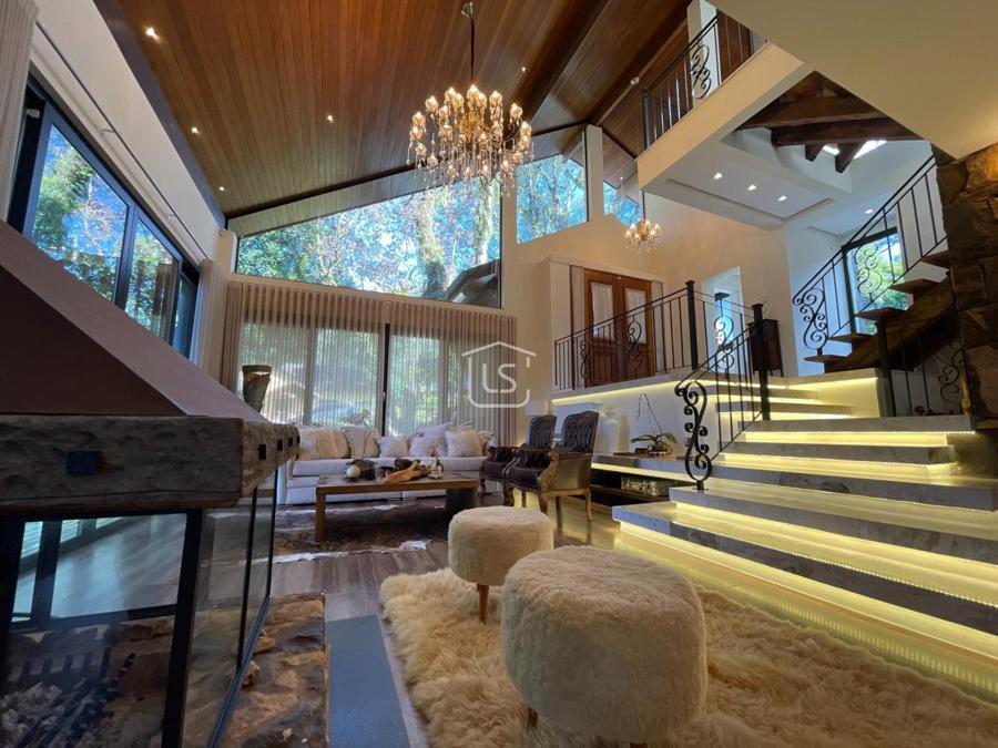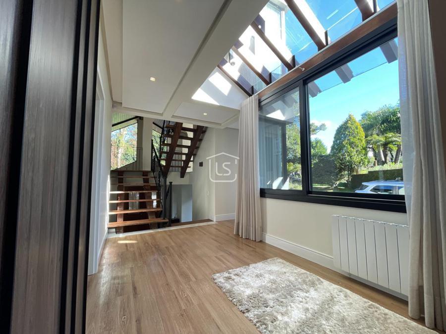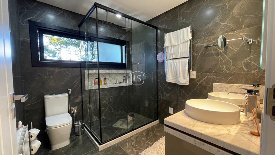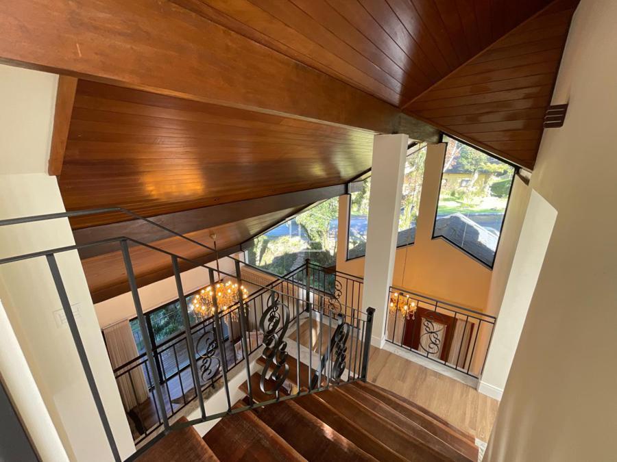 Distribuída em 4 suítes, sala de estar com lareira, sala de jantar com sacada, espaço gourmet com churrasqueira, parrilla e bifeteira. Cozinha americana com fogão a lenha e lavabo.