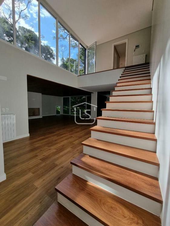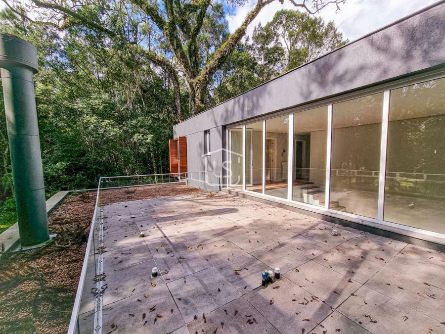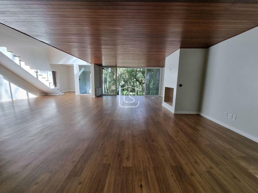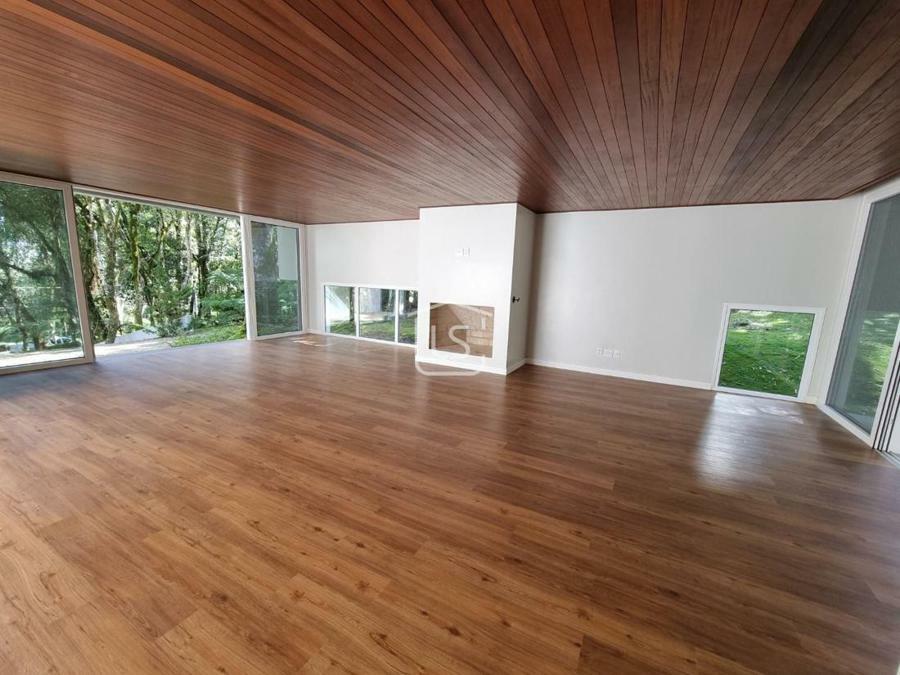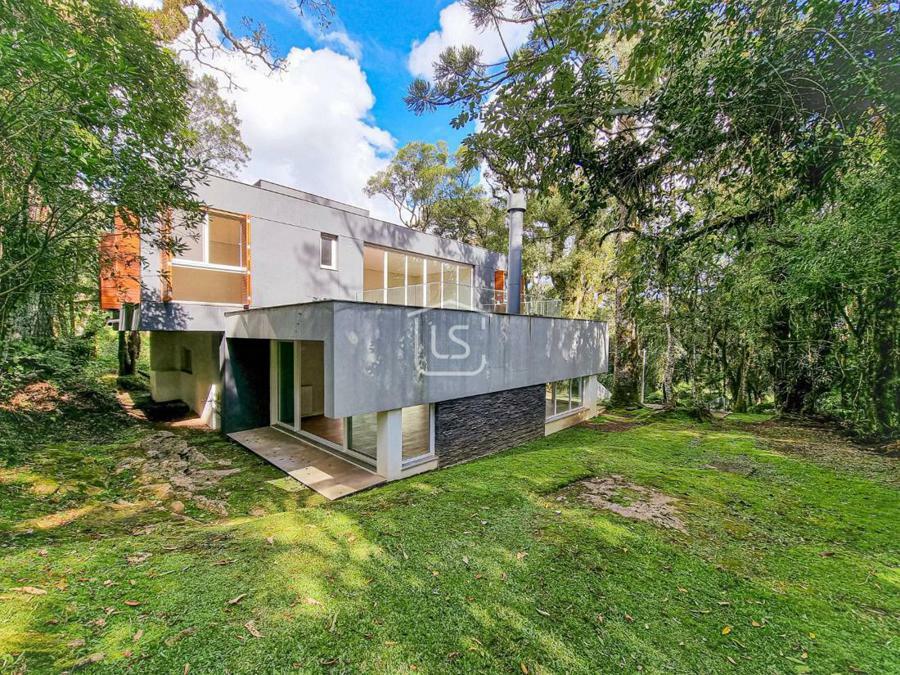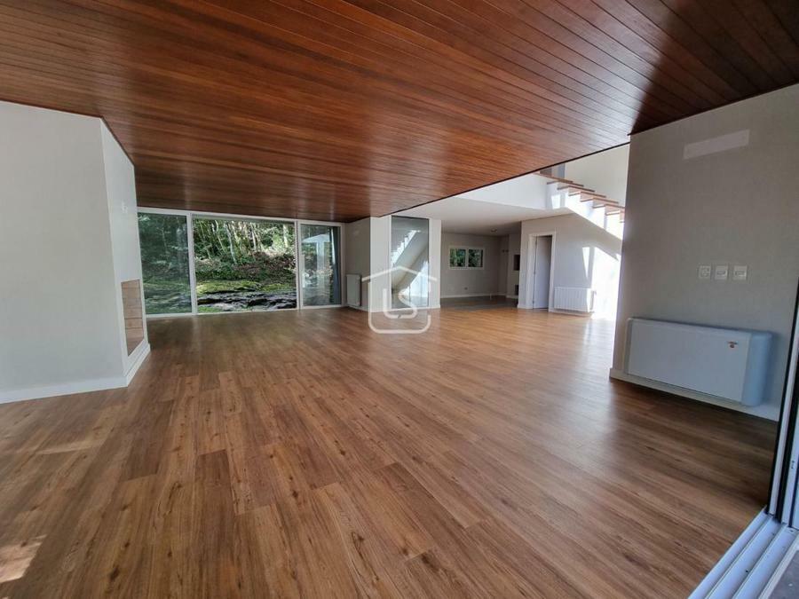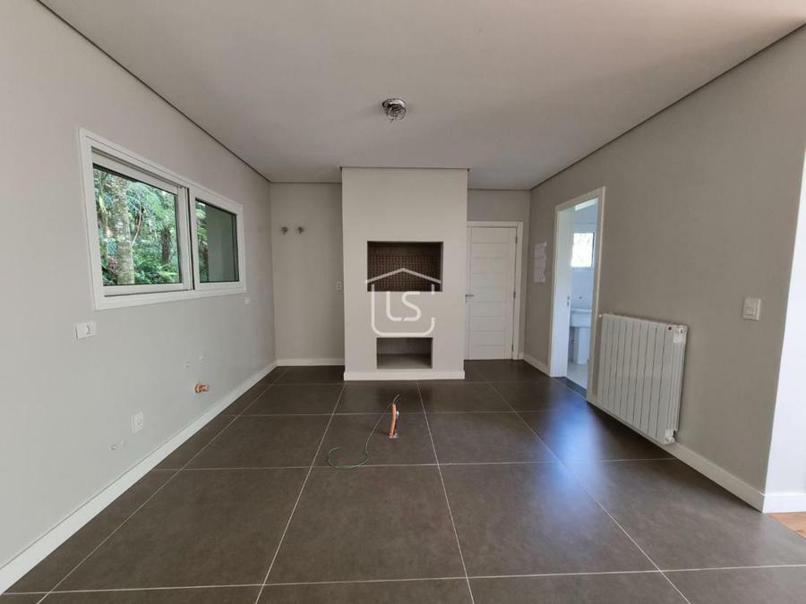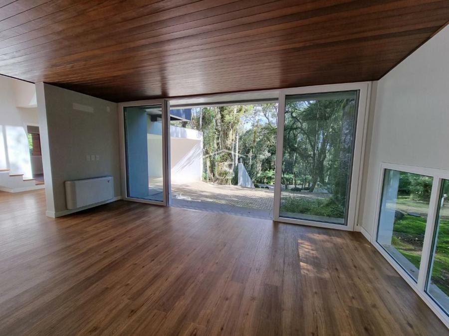 Casa em Gramado com 4 Dormitórios.O Bosque!Excelente residência, NOVA, bem distribuída em 4 suítes (sendo uma térrea e uma máster), amplo living 2 ambientes com lareira, cozinha americana com churrasqueira, lavabo, área de serviço com banheiro social, adega, depósito, garagem para 2 carros, terraço com espera para jacuzzi. Espera para automação liga/desliga da iluminação interna, monitoramento remoto de temperatura e umidade, 2 Câmeras de segurança com sensor de disparo com foto e envio por e-mail, esquadrias em PVC com vidro duplo e tela de mosquiteiro, espera para ar-condicionado, paisagismo, tablet para controle dos sistemas instalados, sistema de calefação e caldeira a diesel instalados com comando remoto, piso aquecido nos banheiros.Condomínio com com área de preservação, lagos, infraestrutura de lazer e portaria 24h.