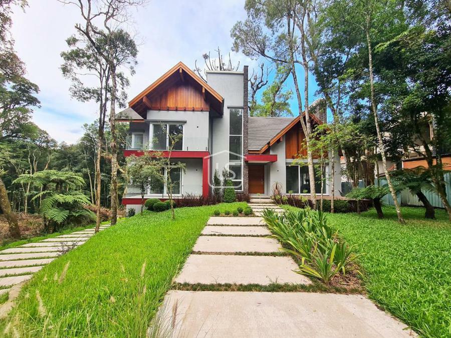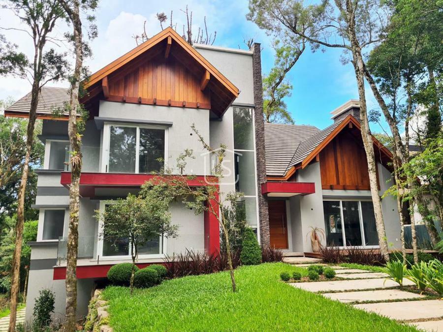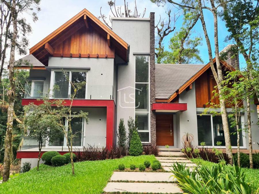 Casa no condomínio O Bosque em Gramado!A Residência conta com 4 suítes sendo duas suítes máster, (uma delas no térreo), 3 lavabos, amplo living integradas com lareira e pé direito duplo, cozinha. Garagem para 3 carros, lavanderia, no subsolo, adega, espaço gourmet com churrasqueira, elevador instalado.Condomínio com infraestrutura de lazer, vegetação e portaria 24h.