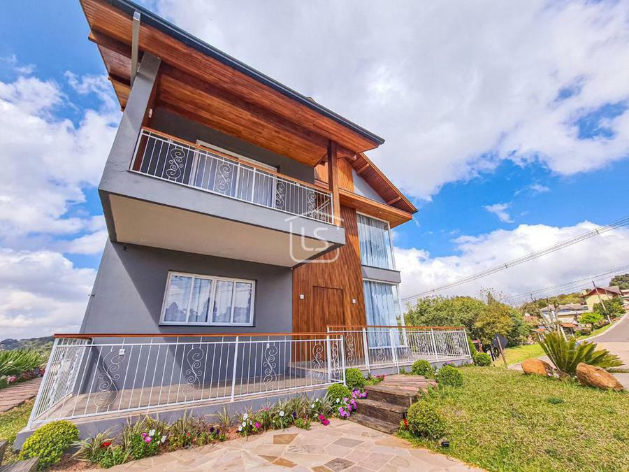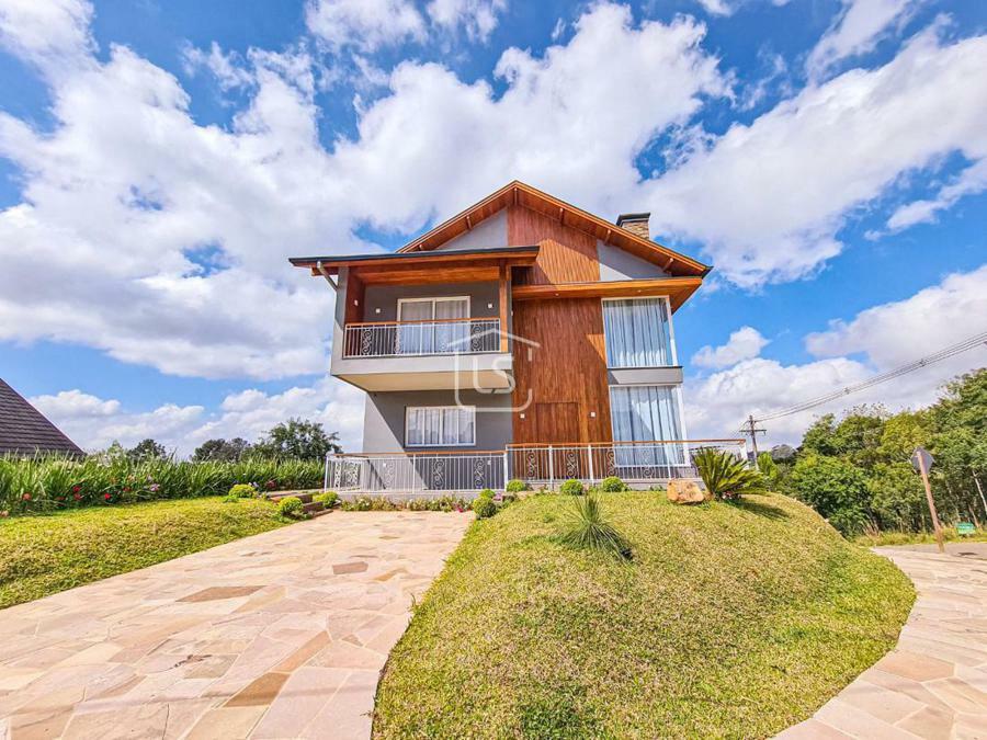 Casa com 5 dormitórios em Gramado. Belíssima casa, localizada em bairro nobre de Gramado, bem distribuída em cinco dormitórios, sendo quatro suítes, duas delas com closet e uma suíte térrea, um amplo living com lareira, cozinha espaçosa com bancada, uma área externa com churrasqueira. Lavabo, lavanderia e banho social. Garagem fechada para 2 carros. Possui espera para split, calefação e água quente. Uma casa pronta para você montar como desejar e viver os melhores momentos com sua família.