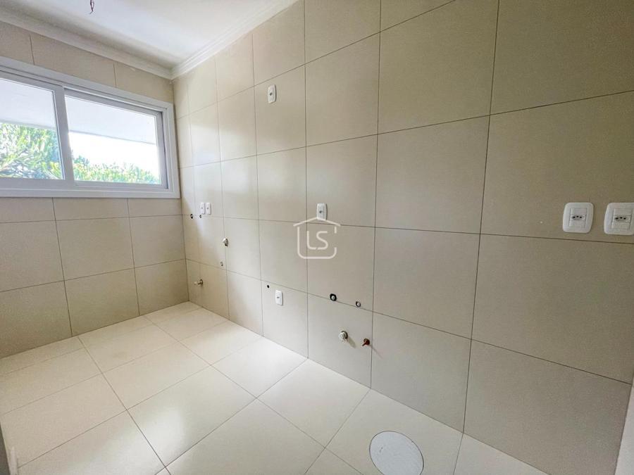 Living dois ambientes com sacada e churrasqueira. Cozinha integrada ao living, lavabo e box coberto de garagem.